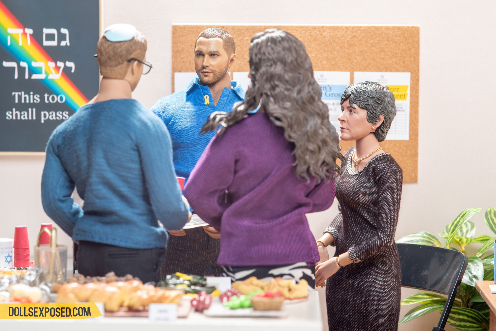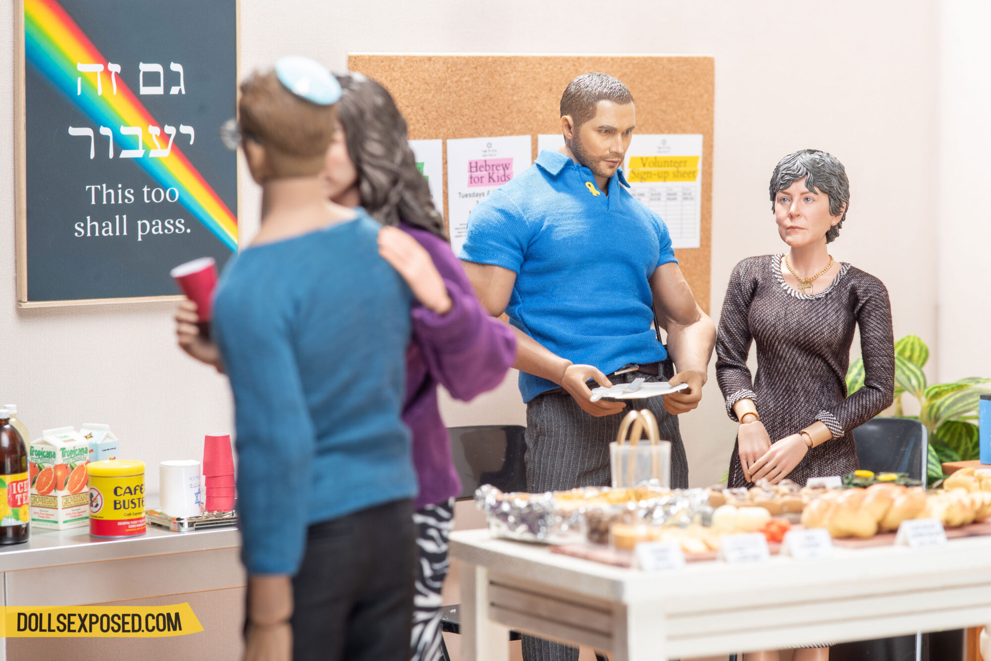 When Wade arrives at Beth Chai Or, he sees Eitan, one of the security volunteers, patrolling the perimeter. Wade already prepared a small container with his stuffed grape leaves and hamantaschen. Eitan thanks Wade and tells him to enjoy himself and he’ll radio Wade if there’s anything.