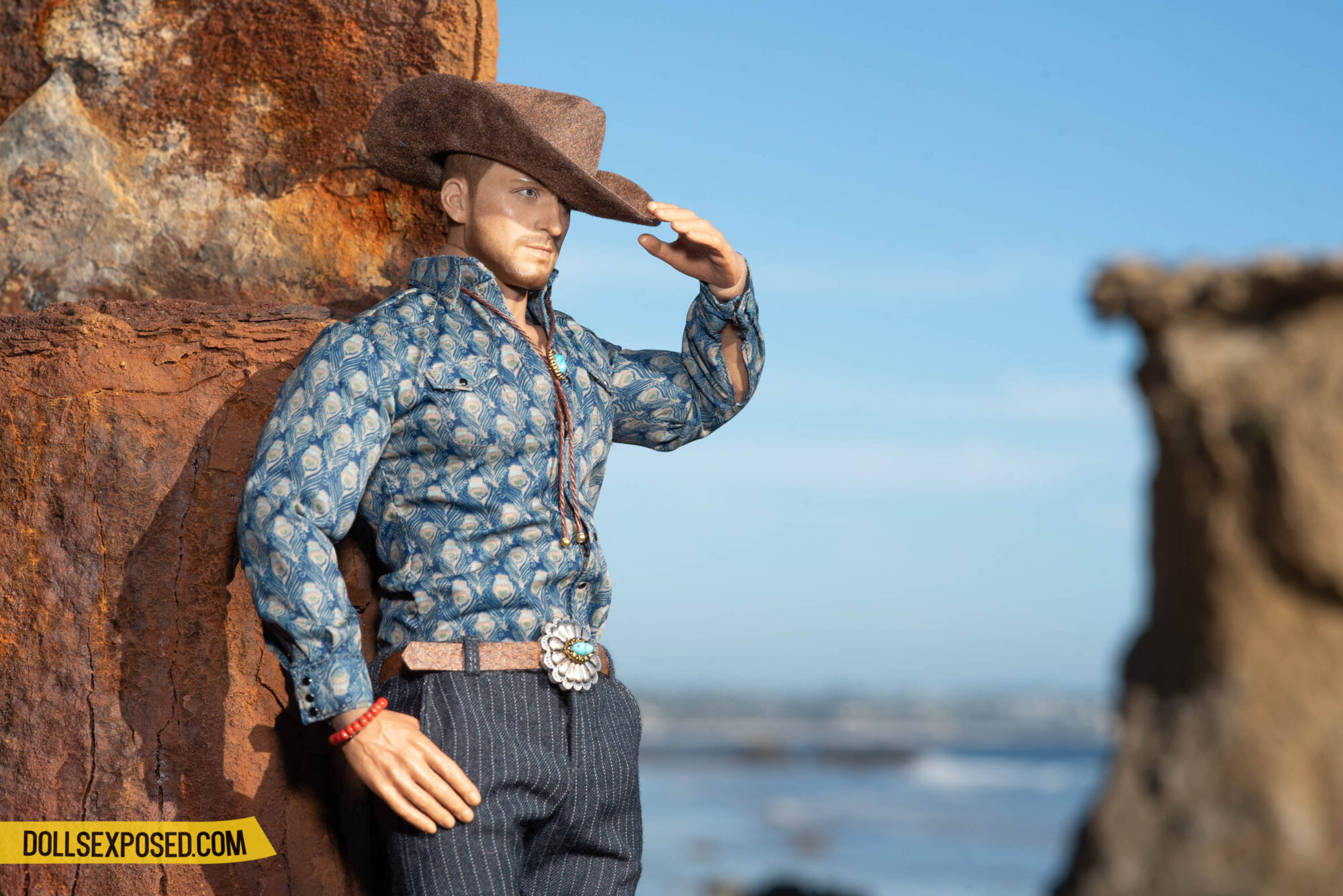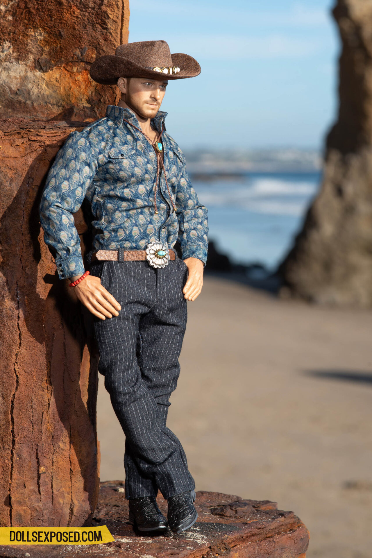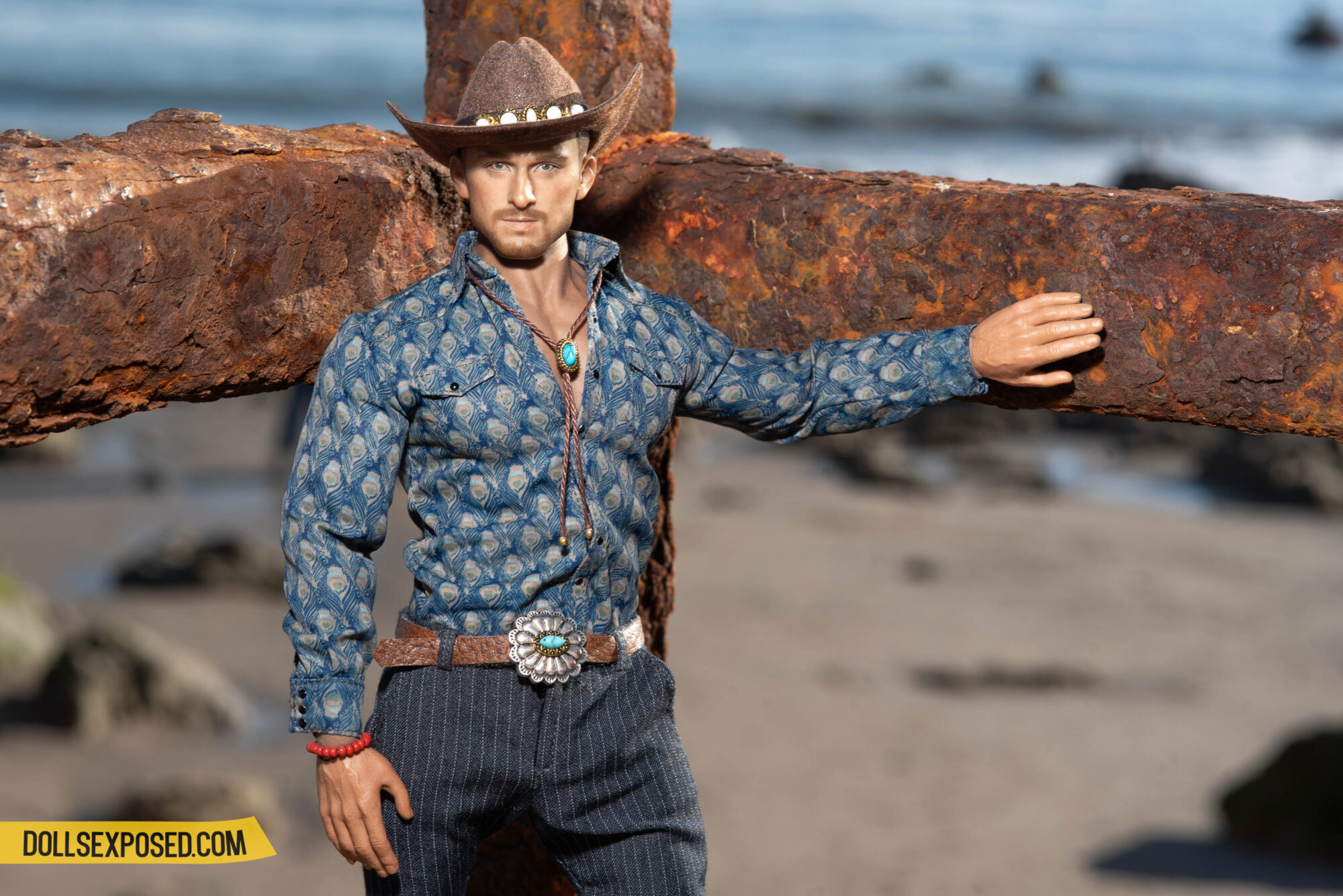 Matt: Shirt by Hot Toys; trousers by MC Toys; hat model’s own with accessory by Dollsexposed; swimsuit, bolo tie, belt, beaded bracelet by Dollsexposed.