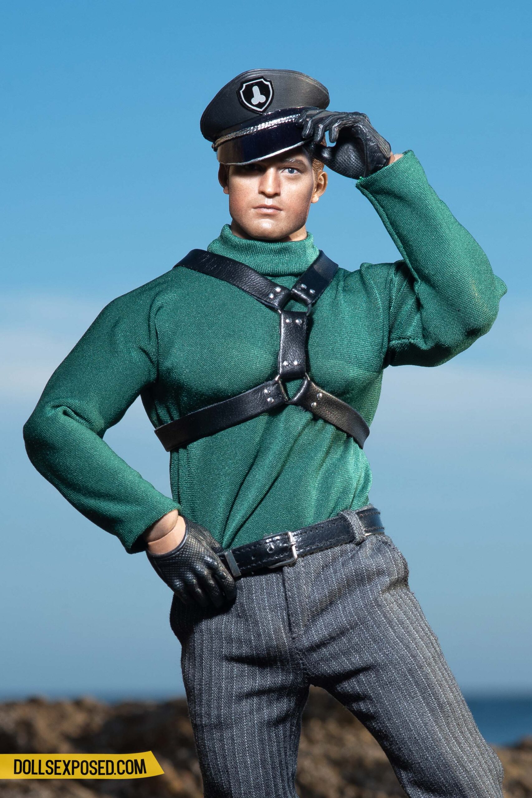 Gar: Boots by Hot Toys; gloves by VTS Toys; trousers by MC Toys; spurs and peak cap model’s own, modified and accessorized by Dollsexposed; turtle neck, harness, swimsuit by Dollsexposed.